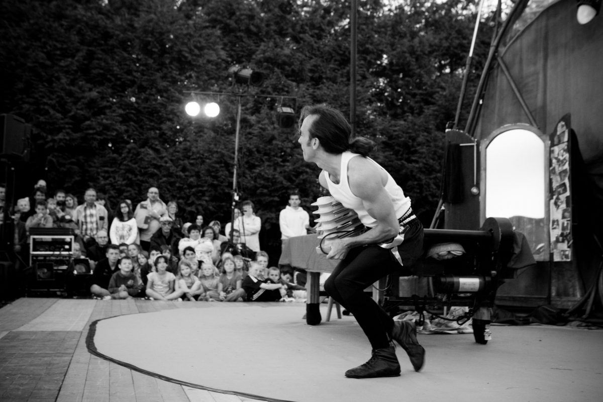 Ancien gymnaste, Rocco Le Flem s’est lancé dans le spectacle vivant. « J’ai toujours aimé les arts du cirque », explique l’artiste, qui a aussi signé la mise en scène, mais c’est seulement à 28 ans que je suis entré dans une compagnie. Ce spectacle, je lai fait pour mes 40 ans et il est, par certains aspects, autobiographique« .