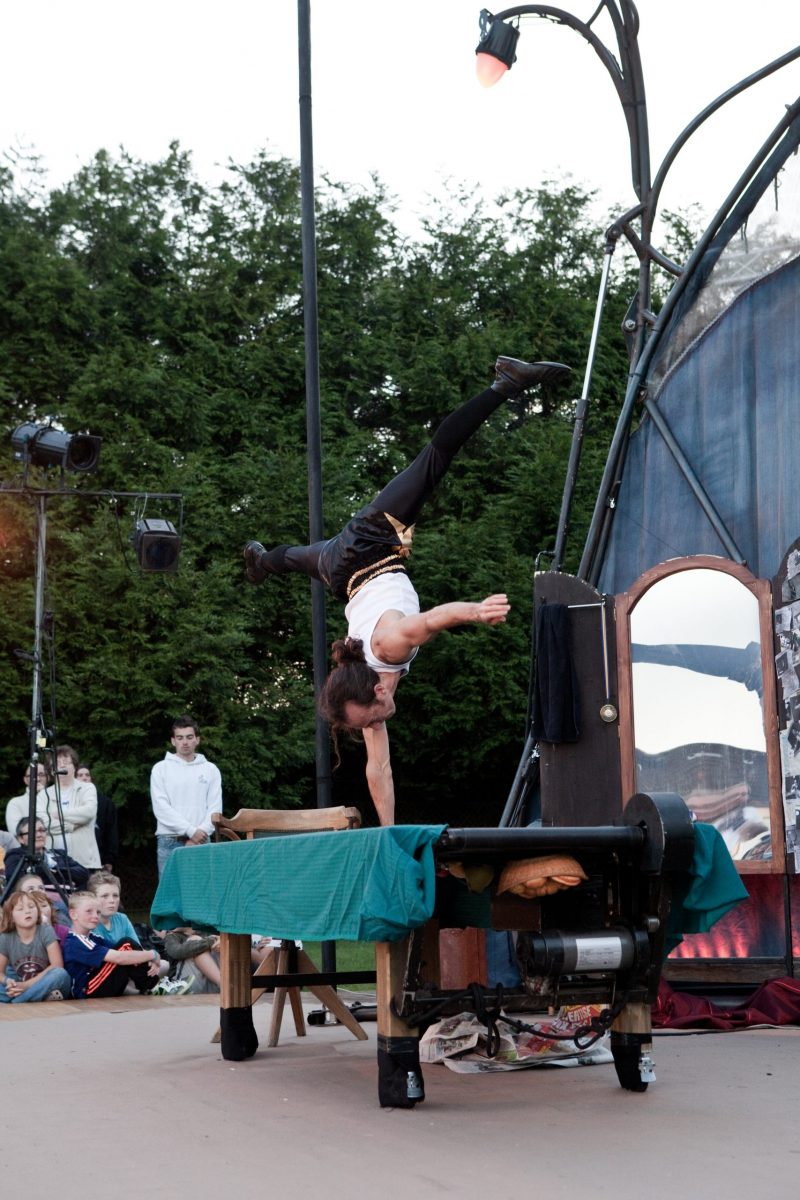 Ancien gymnaste, Rocco Le Flem s’est lancé dans le spectacle vivant. « J’ai toujours aimé les arts du cirque », explique l’artiste, qui a aussi signé la mise en scène, mais c’est seulement à 28 ans que je suis entré dans une compagnie. Ce spectacle, je lai fait pour mes 40 ans et il est, par certains aspects, autobiographique« .